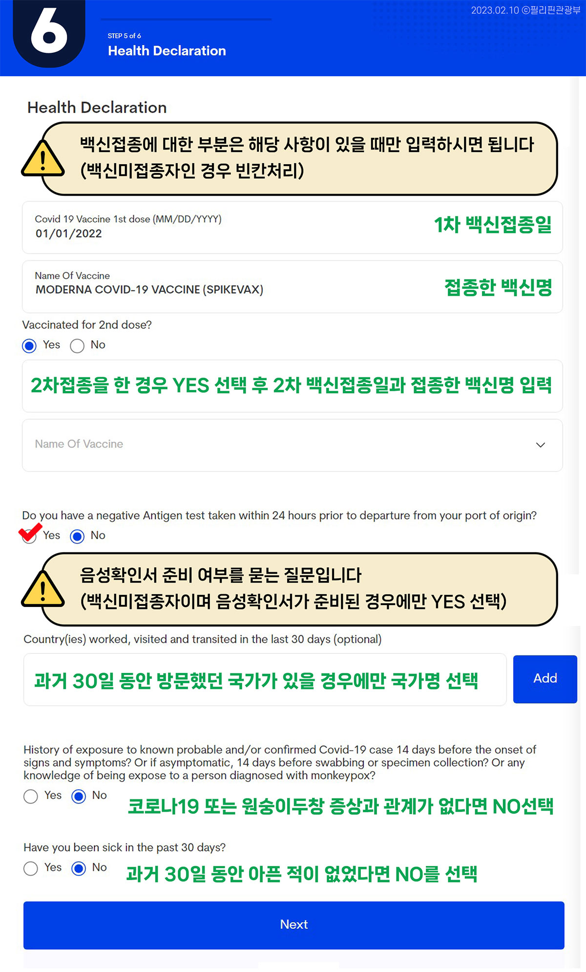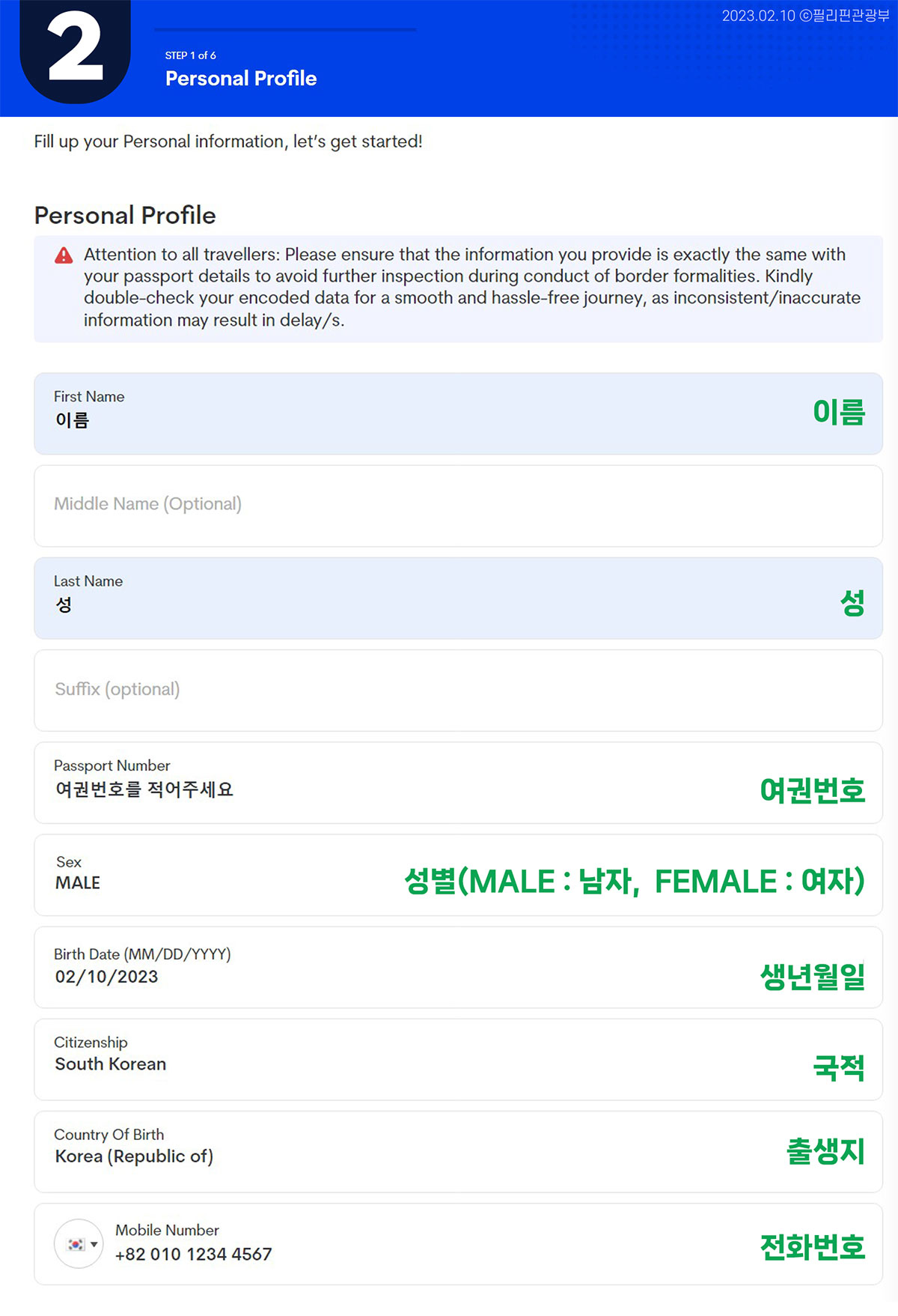 [필리핀 관광부에 나와있는 작성방법 첨부]