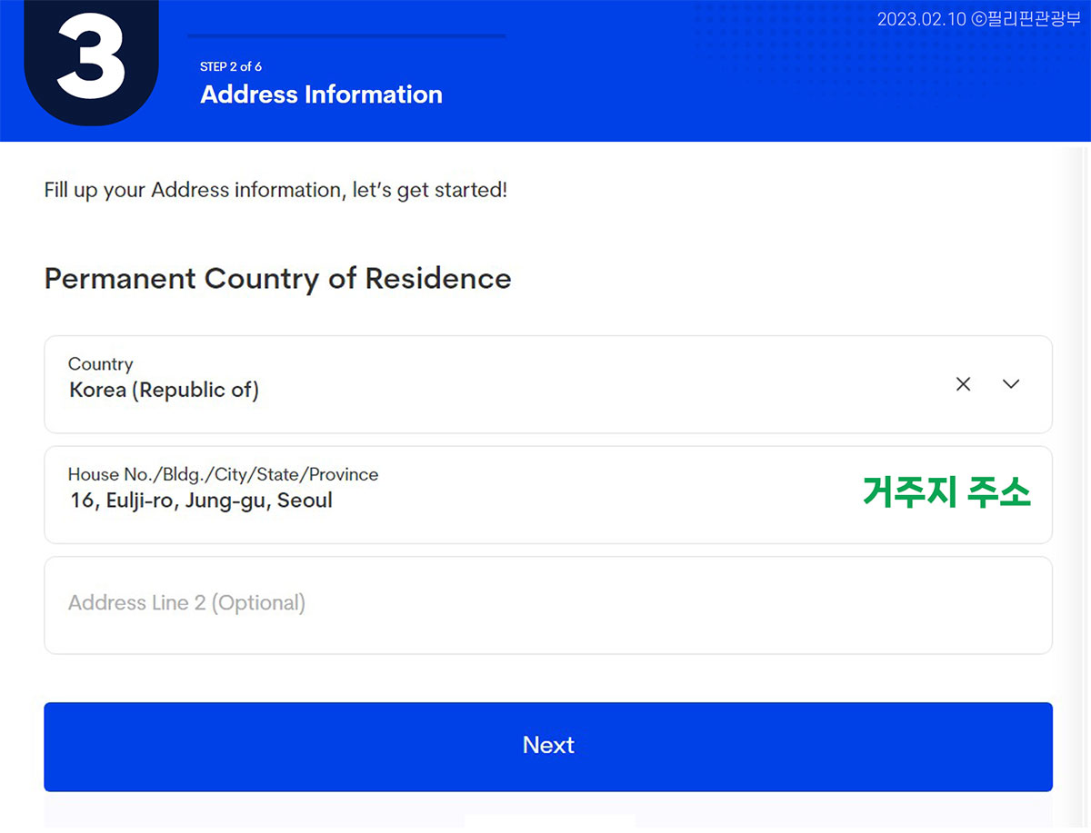 거주지를 작성하는거라 Korea (Republic of) 선택 후 네이버에 영문주소변환 으로 검색하셔서 작성하시면 됩니다.